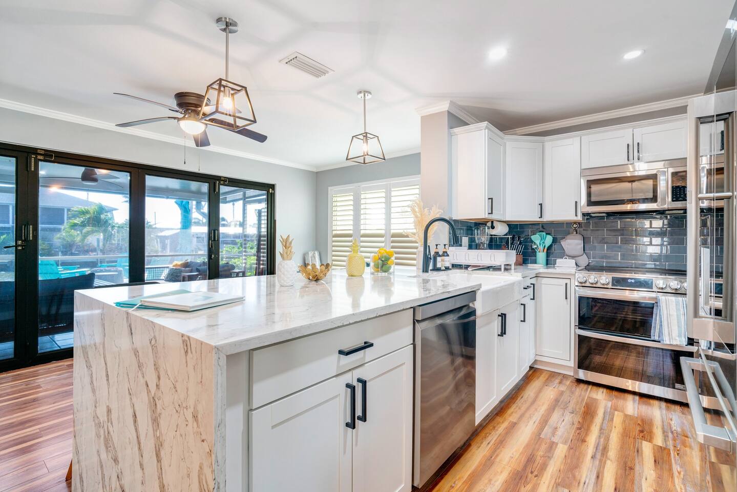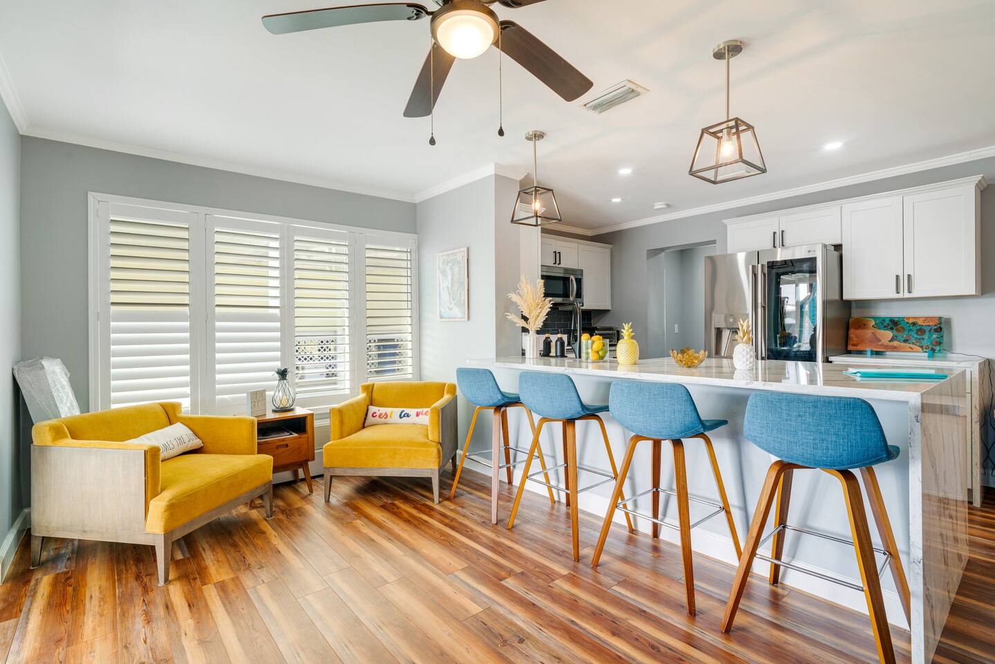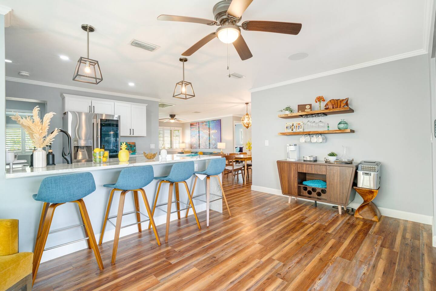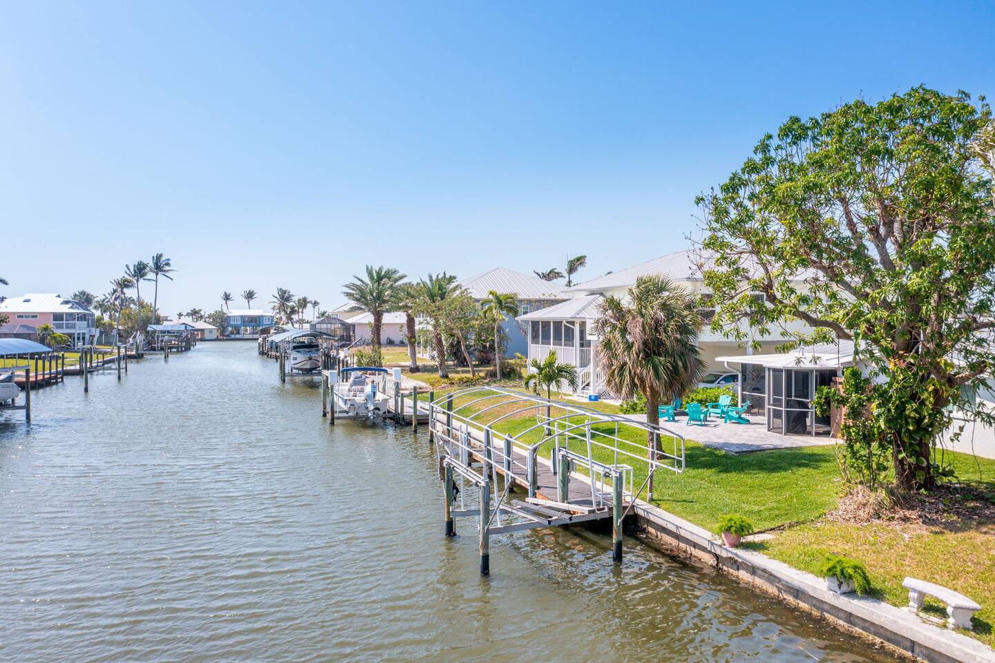 Escape to waterside bliss just off the tip of Pine Island. This 3-bed, 2-bath canal-front home invites your crew to cook, relax, and reconnect — with indoor elegance and outdoor charm under one roof. Fire up the grill, soak in sunset views over your private canal, then launch a paddleboard or join a tiki cruise just minutes away. Key Features ☀ Sleeps 8 • 3 Bedrooms, 2 Bathrooms ☀ Canal-front, private dock / boat slip potential ☀ Enclosed patio + fire pit area with Adirondack seating ☀ Fully equipped chef’s kitchen with stainless appliances ☀ Dedicated workspace & high speed WiFi ☀ Kid-friendly: crib, high chair, board games ☀ Air conditioning, ceiling fans, extra linens, washer/dryer ☆☆ BEDROOMS ☆☆ Primary (King, ensuite) — a sanctuary for two, this room offers privacy, direct bathroom access, and comfort far from distractions. Queen bedroom — calm, inviting, ideal for couples or solo travelers. Bunk + trundle + crib room — sleeps up to 4 (bunk/twin + full + crib), perfect for kids or extended family. All bedrooms are on one level, making access easy and flow seamless. ☆☆ BATHROOMS ☆☆ You’ll find 2 full baths (one ensuite to the primary, one shared) stocked with body wash, shampoo, conditioner, towels, and all essentials. A convenient outdoor shower is perfect for rinsing off after water adventures. ☆☆ KITCHEN & RELAXING AREAS ☆☆ Your kitchen features luxe countertops, stainless appliances, white cabinetry, and tasteful art accents. It’s fully stocked (pots, pans, blender, wine glasses, baking tools) so you can cook your favorite meals. The open floor plan connects kitchen and dining to the living room, where a Sonos Bluetooth sound system, TV, and cozy seating make unwinding a breeze. The dedicated workspace offers privacy and focus if you need to get a little work done. ☆☆ OUTSIDE SPACE ☆☆ Step into your enclosed patio with comfortable seating, where canal views and tropical breezes set the tone. Just beyond, the fire pit and Adirondack chairs face the water for evening conversations and stargazing. Launch paddleboards or kayaks from the canal. The property includes driveway parking (no stairs indoor) and is single-level throughout. ★☆ Book Today & Let Us Take Care Of You ☆★ Your next getaway awaits. Whether you’re chasing sunsets, fishing, paddleboarding, or simply savoring quiet canal life, this home is your launchpad. Reserve now and let us handle the rest — from moving in to making memories. 📍 Neighborhood & Local Attractions Your stay places you at the southern tip of Pine Island, in laid-back St. James City on the canal. You’ll be minutes from: Cruisin’ Tikis floating tiki bar — a top local experience, BYOB and fun for families or friends. Cruisin Tikis Galt Preserve & Calusa Heritage Trail — nature trails, wildlife, and history on Pine Island. Visit Florida +2 Pine Island Sportfishing +2 Sunset dolphin cruises & water tours — enjoy local marine life and scenic views. expedia +2 travelocity +2 Beaches around Sanibel & Bowman's Beach — a short drive for shelling, swimming, and coastal charm.