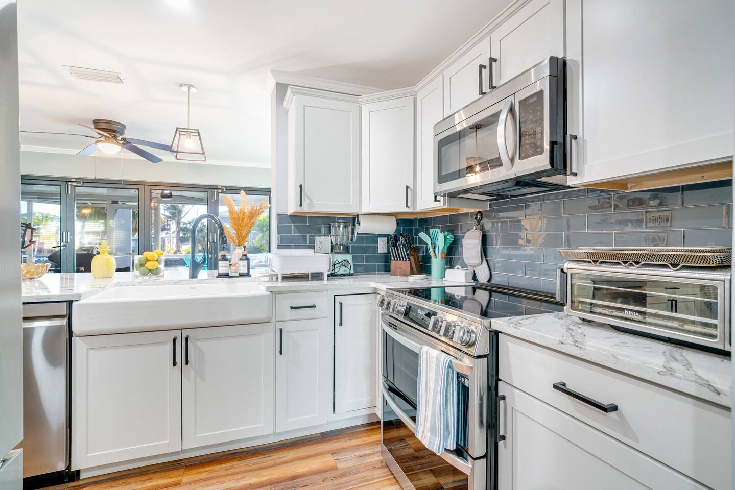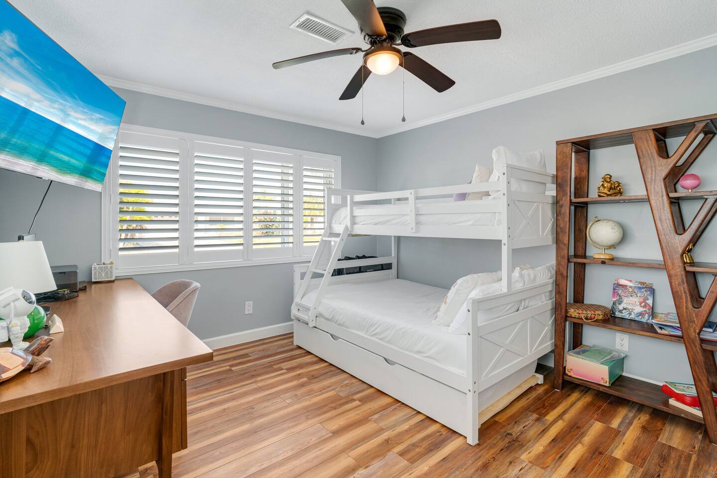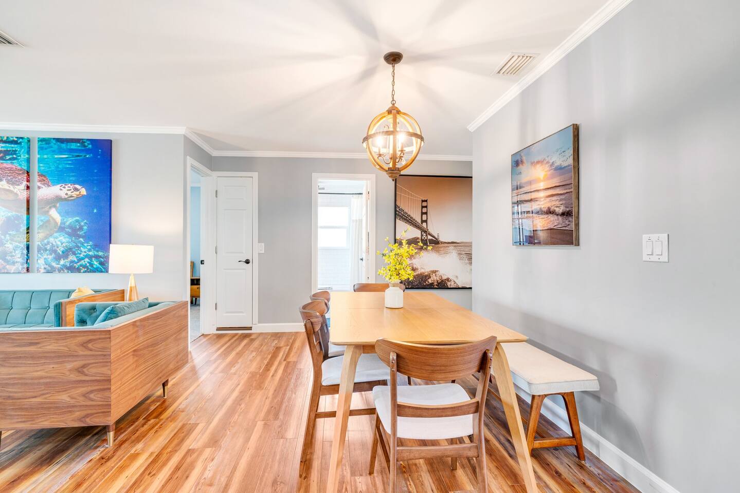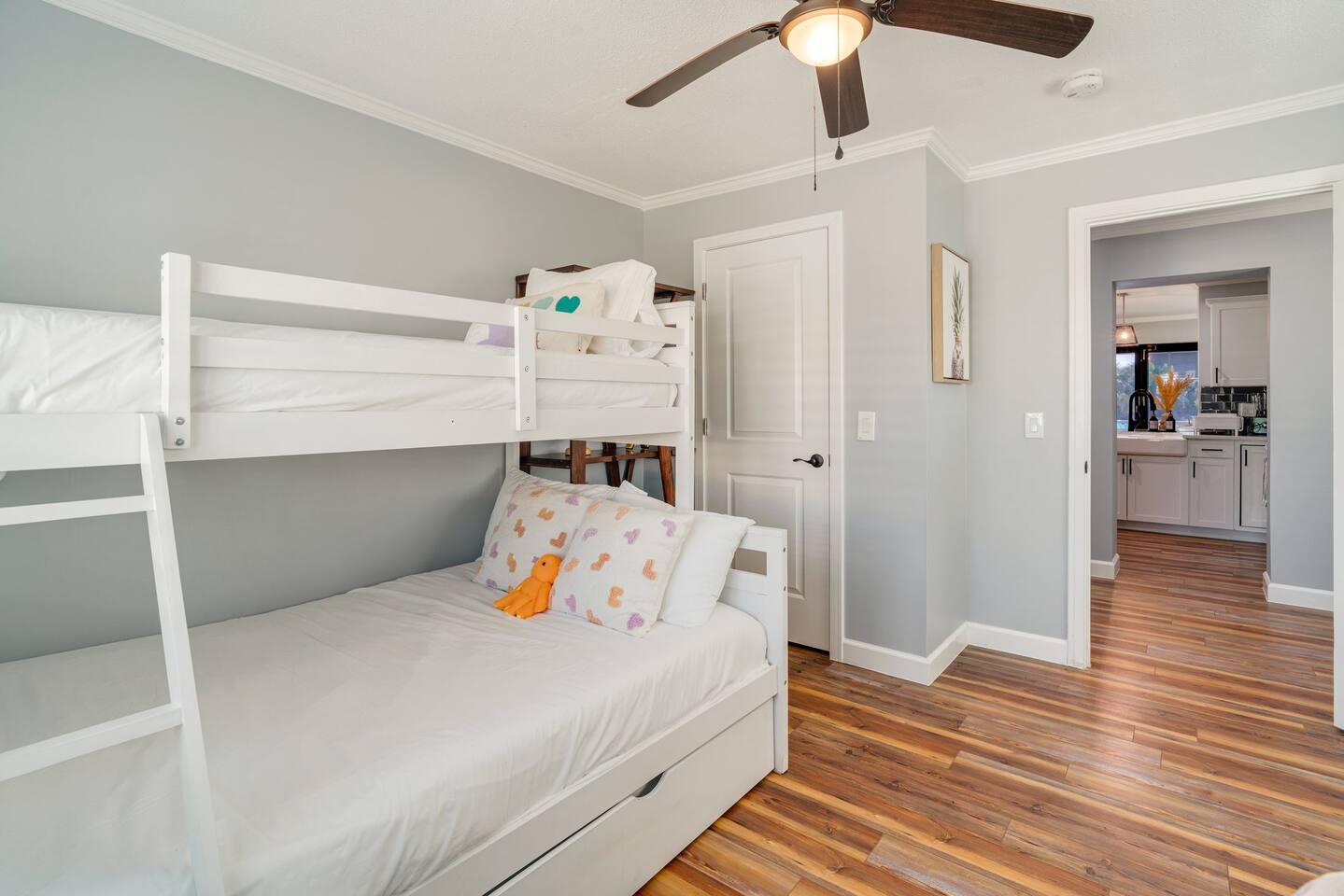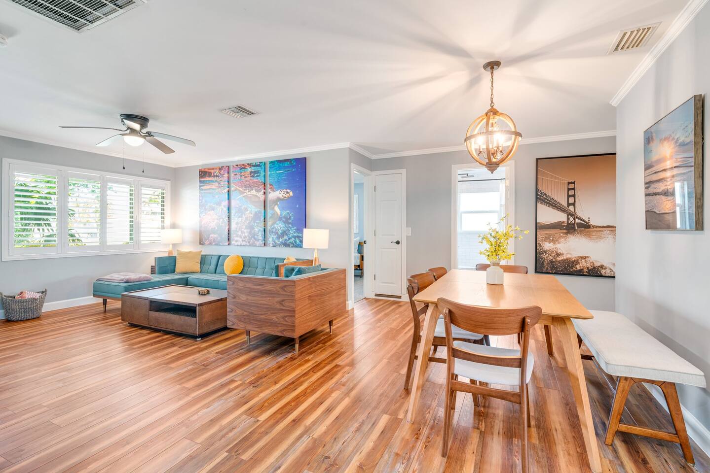 Escape to waterside bliss just off the tip of Pine Island. This 3-bed, 2-bath canal-front home invites your crew to cook, relax, and reconnect — with indoor elegance and outdoor charm under one roof. Fire up the grill, soak in sunset views over your private canal, then launch a paddleboard or join a tiki cruise just minutes away. Key Features ☀ Sleeps 8 • 3 Bedrooms, 2 Bathrooms ☀ Canal-front, private dock / boat slip potential ☀ Enclosed patio + fire pit area with Adirondack seating ☀ Fully equipped chef’s kitchen with stainless appliances ☀ Dedicated workspace & high speed WiFi ☀ Kid-friendly: crib, high chair, board games ☀ Air conditioning, ceiling fans, extra linens, washer/dryer ☆☆ BEDROOMS ☆☆ Primary (King, ensuite) — a sanctuary for two, this room offers privacy, direct bathroom access, and comfort far from distractions. Queen bedroom — calm, inviting, ideal for couples or solo travelers. Bunk + trundle + crib room — sleeps up to 4 (bunk/twin + full + crib), perfect for kids or extended family. All bedrooms are on one level, making access easy and flow seamless. ☆☆ BATHROOMS ☆☆ You’ll find 2 full baths (one ensuite to the primary, one shared) stocked with body wash, shampoo, conditioner, towels, and all essentials. A convenient outdoor shower is perfect for rinsing off after water adventures. ☆☆ KITCHEN & RELAXING AREAS ☆☆ Your kitchen features luxe countertops, stainless appliances, white cabinetry, and tasteful art accents. It’s fully stocked (pots, pans, blender, wine glasses, baking tools) so you can cook your favorite meals. The open floor plan connects kitchen and dining to the living room, where a Sonos Bluetooth sound system, TV, and cozy seating make unwinding a breeze. The dedicated workspace offers privacy and focus if you need to get a little work done. ☆☆ OUTSIDE SPACE ☆☆ Step into your enclosed patio with comfortable seating, where canal views and tropical breezes set the tone. Just beyond, the fire pit and Adirondack chairs face the water for evening conversations and stargazing. Launch paddleboards or kayaks from the canal. The property includes driveway parking (no stairs indoor) and is single-level throughout. ★☆ Book Today & Let Us Take Care Of You ☆★ Your next getaway awaits. Whether you’re chasing sunsets, fishing, paddleboarding, or simply savoring quiet canal life, this home is your launchpad. Reserve now and let us handle the rest — from moving in to making memories. 📍 Neighborhood & Local Attractions Your stay places you at the southern tip of Pine Island, in laid-back St. James City on the canal. You’ll be minutes from: Cruisin’ Tikis floating tiki bar — a top local experience, BYOB and fun for families or friends. Cruisin Tikis Galt Preserve & Calusa Heritage Trail — nature trails, wildlife, and history on Pine Island. Visit Florida +2 Pine Island Sportfishing +2 Sunset dolphin cruises & water tours — enjoy local marine life and scenic views. expedia +2 travelocity +2 Beaches around Sanibel & Bowman's Beach — a short drive for shelling, swimming, and coastal charm.